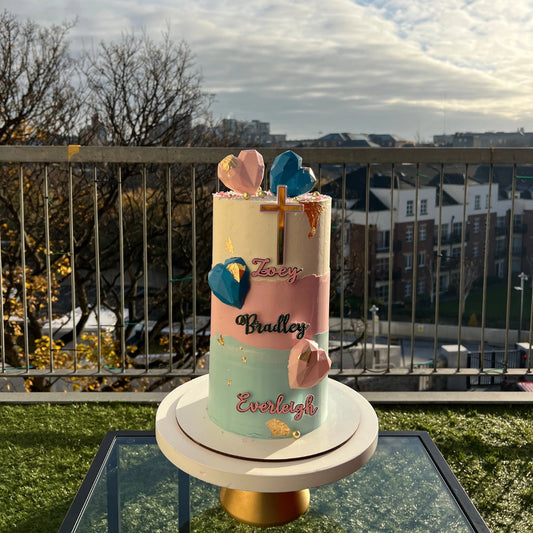 PINK AND BLUE CUSTOM CHRISTENING CAKE