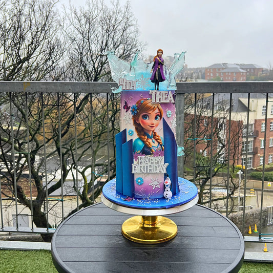 Luxury Frozen Inspired Birthday Cake | Bespoke Tall Blue Winter Cake Dublin | CakeMeAway